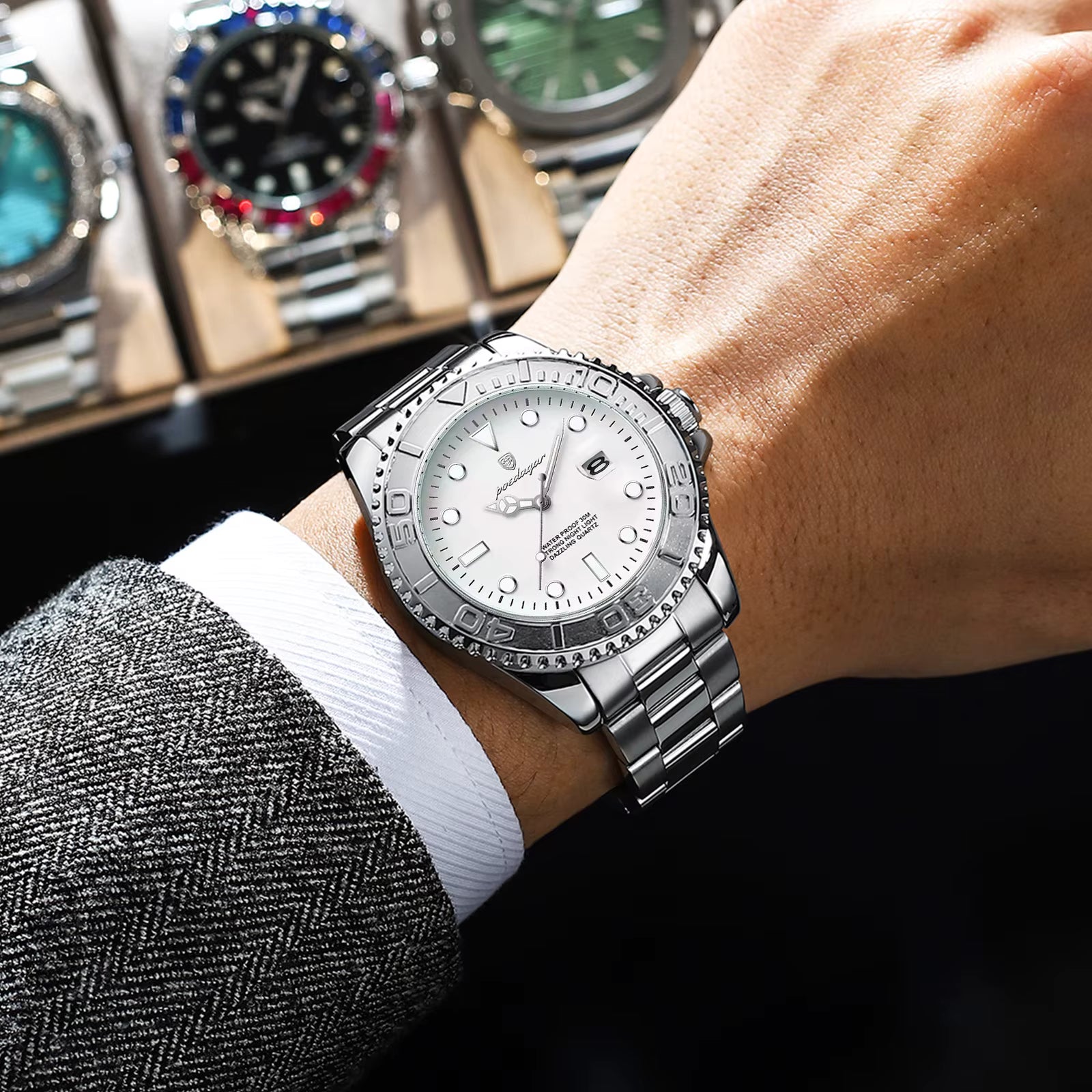 Con resistencia al agua de 3 ATM (30 m), este reloj soporta salpicaduras, lluvia o lavarte las manos sin preocupaciones, ideal para el uso diario (no apto para natación prolongada).